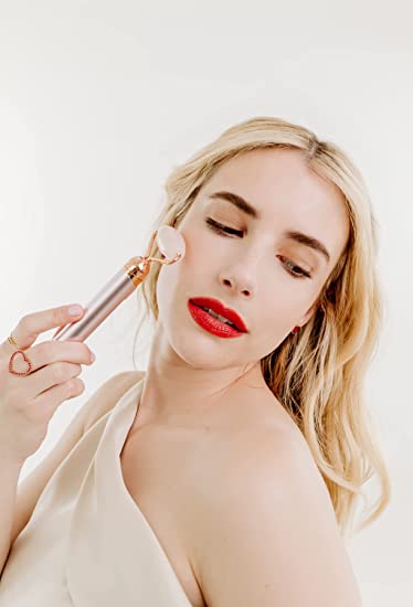 Roller de Massage Visage en Quartz Rose Authentique, avec technologie micro-vibrations