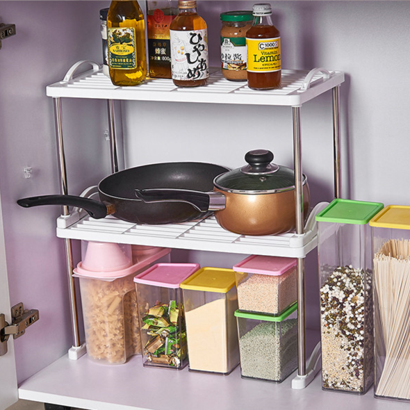 Ce séparateur de rangement en plastique pour étagères de cuisine est conçu pour économiser de l'espace et organiser les articles dans vos armoires, votre garde-manger, ou votre comptoir.