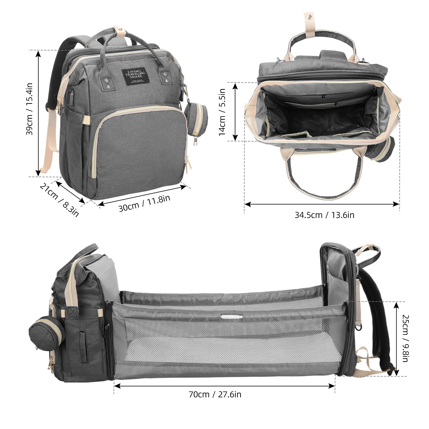 - ? - UTILISATION POLYVALENTE: Ce sac à langer 4 en 1 pour bébé est essentiel pour tout parent. Il peut être utilisé comme lit de voyage, couche, organisateur de poussette, grand espace intérieur et lit de voyage. Avec une poche pratique, plus de choses peuvent être rangées dans un sac à dos élégant.