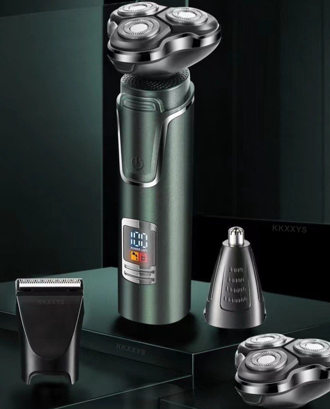 1.Rasoir à induction intelligent avec grand écran LCD et 3 têtes de rechange. Ajustez facilement le mode dont vous avez besoin.
