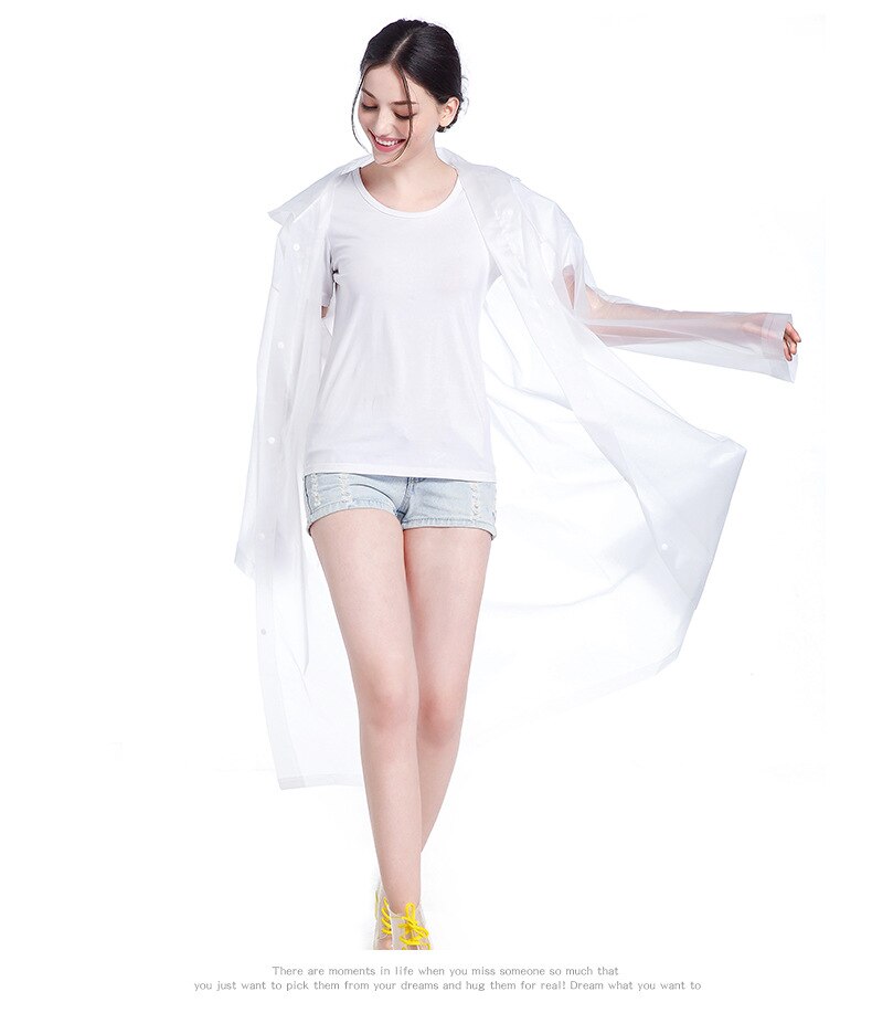 Caractéristiques: Matériau EVA transparent, imperméable, léger et facile à nettoyer. Matériau de 0,15 mm d’épaisseur et coutures collées pour la résistance à l’usure et la durabilité. La fermeture à pression et la conception de la capuche à cordon de serrage gardent votre corps, votre cou et votre tête au sec. Pliable en petite taille, se glisse facilement dans le sac à dos / maison / bureau ou voiture pour une utilisation pratique. Convient pour les voyages, la pêche, la randonnée, le camping, les promenades aquatiques les jours de pluie.