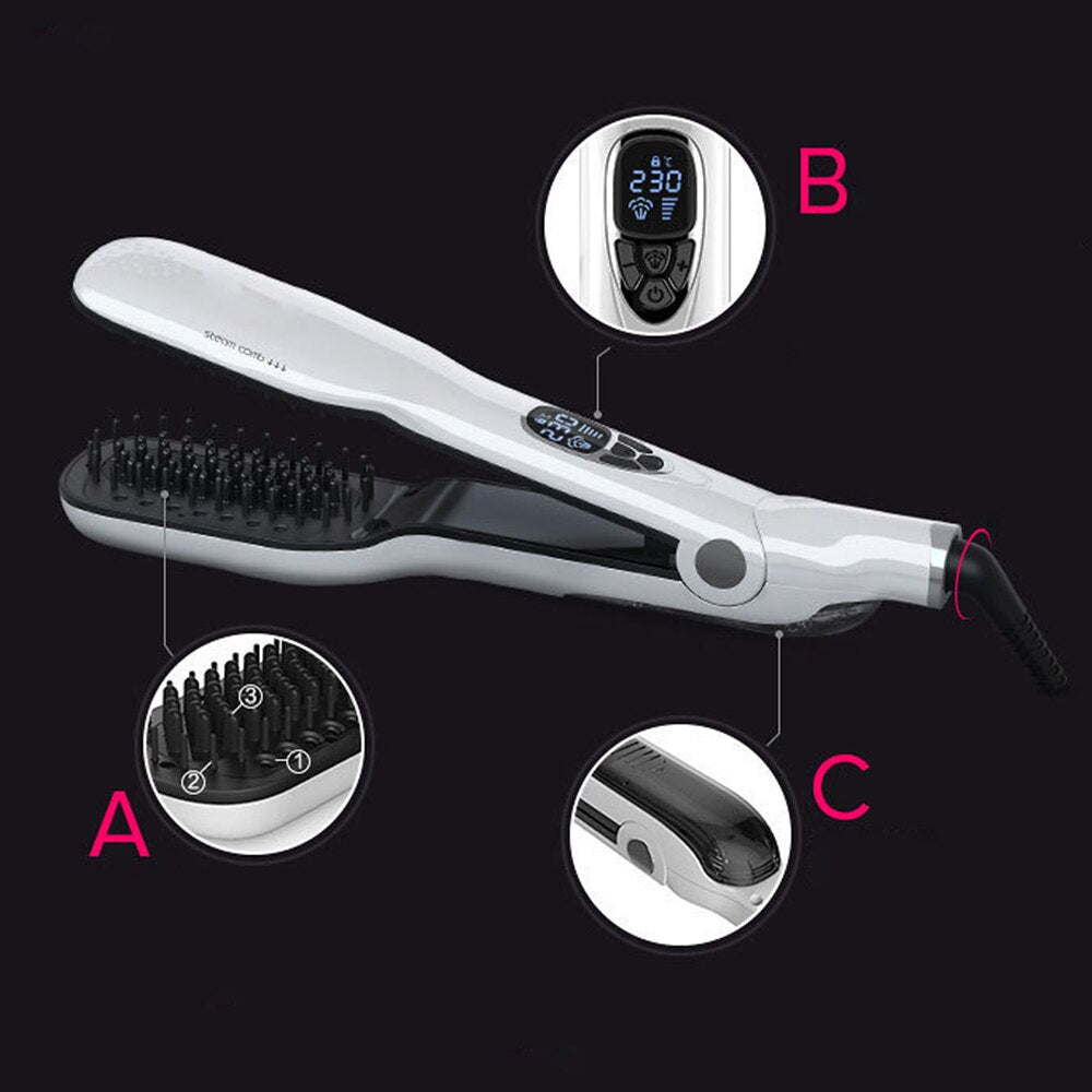 Fer à lisser vapeur professionnel avec peigne amovible et écran LCD