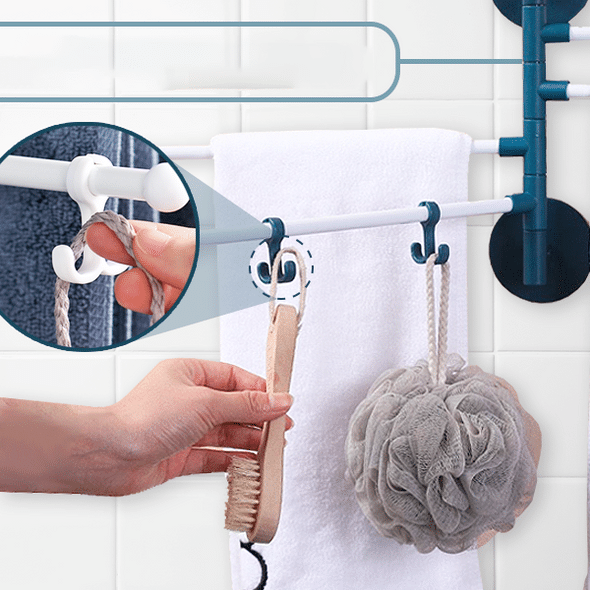 Ce porte-serviettes est doté d'une astucieuse barre oscillante à 180° qui tourne en douceur dans la direction que vous souhaitez. Il vous permet de ranger vos tissus humides ou propres en même temps sans même se toucher. De plus, comme vos serviettes sont efficacement réparties, le séchage est plus rapide et les odeurs plus fraîches. La barre pivotante permet également de suspendre et de récupérer plus facilement les objets.