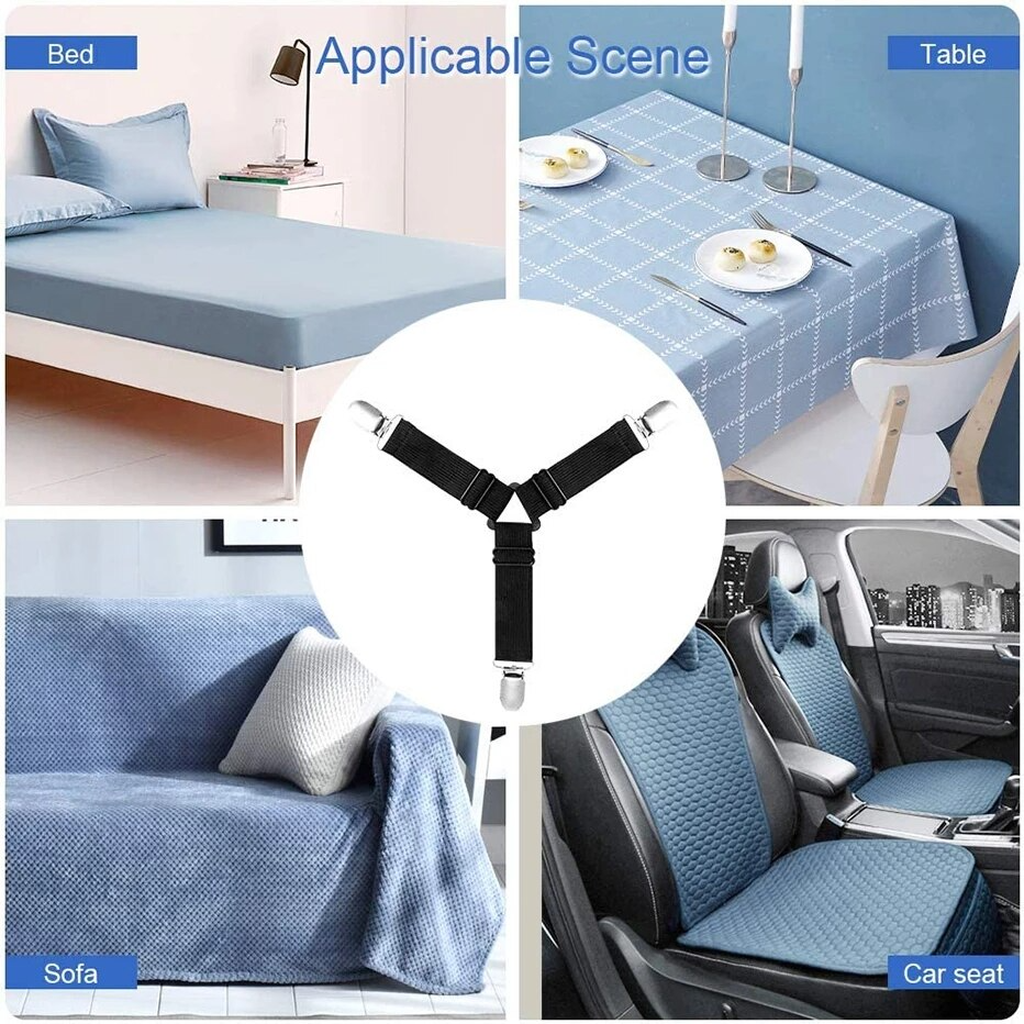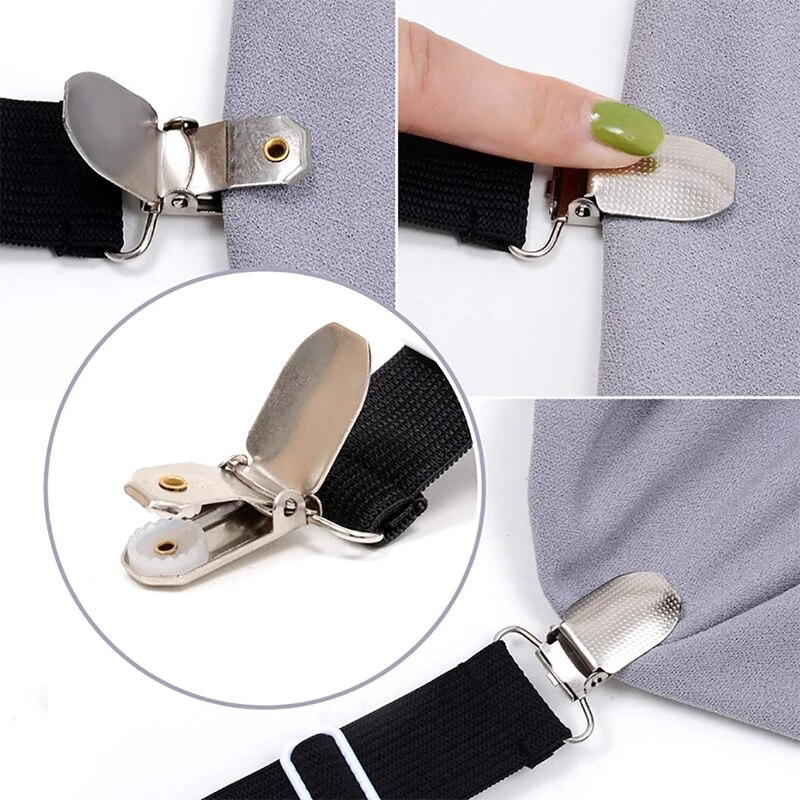 Lot de 4 clips élastiques pour lit - Pinces élastiques - Coupe-ceinture - Matelas élastique antidérapant - Pour maison et textiles