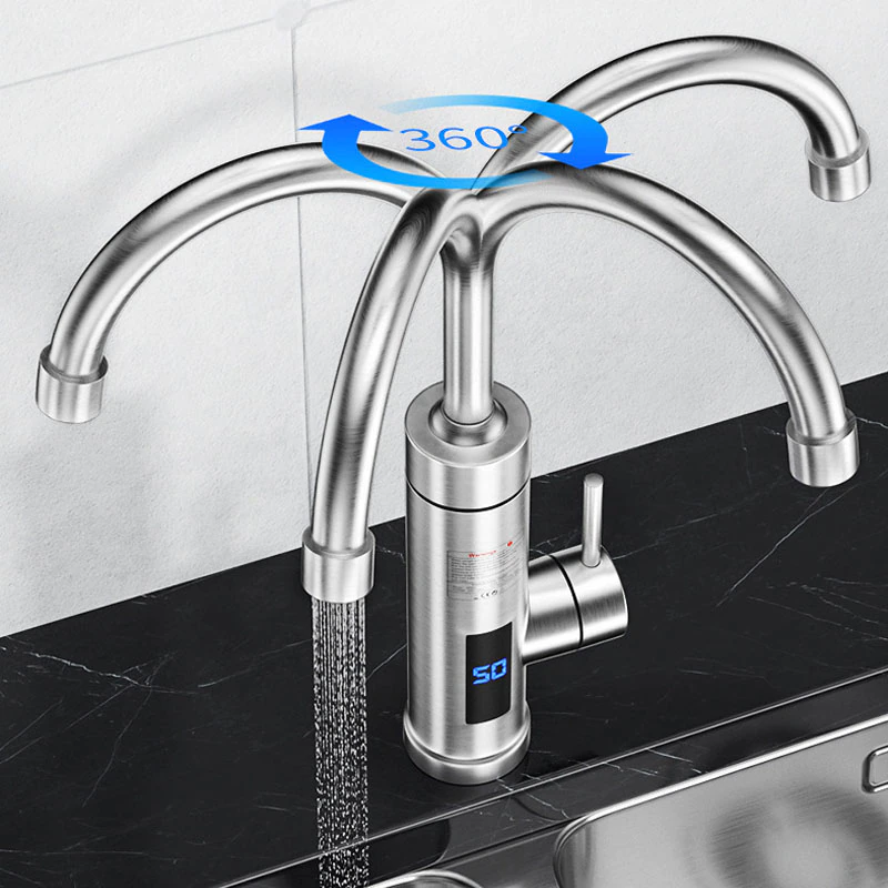 Chauffage instantané Le robinet instantané utilise un élément de chauffage en acier inoxydable 304, un chauffage rapide à haute puissance 3000 W et fournit en continu de l'eau chaude.